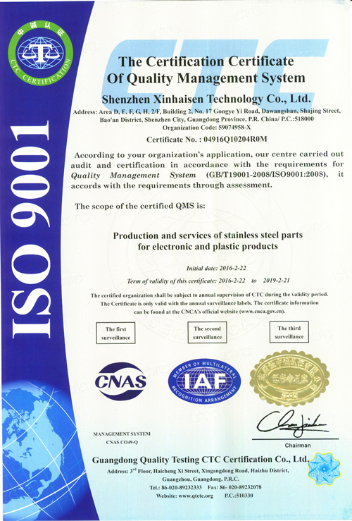 深圳市鑫海森科技有限公司成立于2006年,坐落于中國廣東省深圳市沙井鎮(zhèn),地理位置優(yōu)越,對于我司原物料采購及協(xié)作加工有無法比擬的迅速性和高品質性。 我司主要進行精密五金件的加工,產(chǎn)品涉及的范圍相當廣泛,涵蓋了通訊、聲學、光學、醫(yī)療、安防、機械、航空、陸運工具、家電等等領域。本公司目前產(chǎn)能1000^2全自動生產(chǎn)線6條。加工厚度從0.02mm-1.5mm產(chǎn)品的精度可以做到... 【查看詳情】